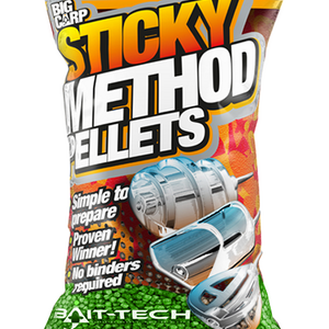 Big Carp Sticky Method Pellets boast high quality ingredients and offer a food source for fish that is unrivalled. Soaked, they become a tacky, heavy pellet that sink fast and stay on the bottom where you need them to be.