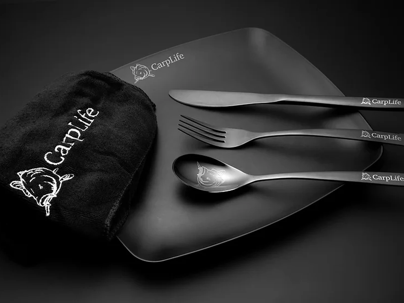 CarpLife Black Etched Stainless Steel Cutlery Set - Knife, Fork & Desert Spoon