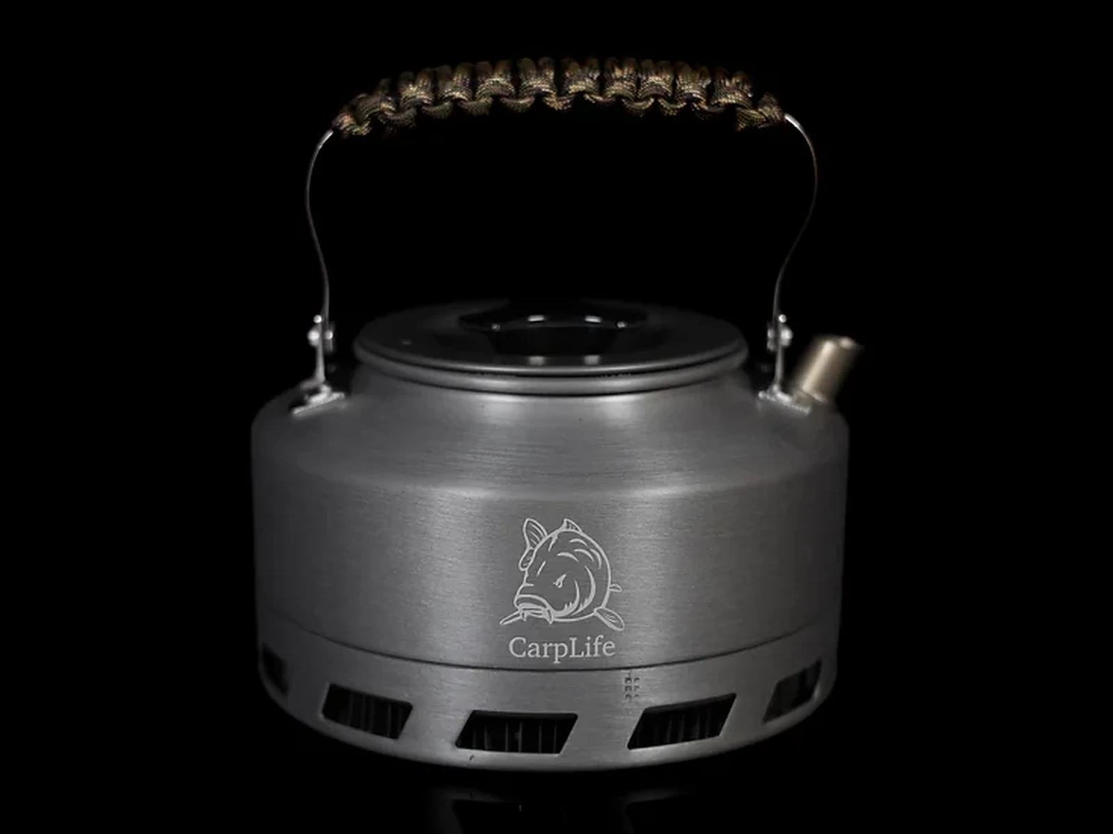 CarpLife Rapid Boil 1.1L Kettle. Etched with the CarpLife Logo