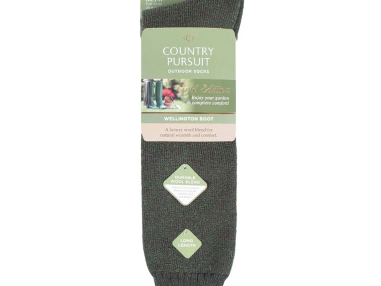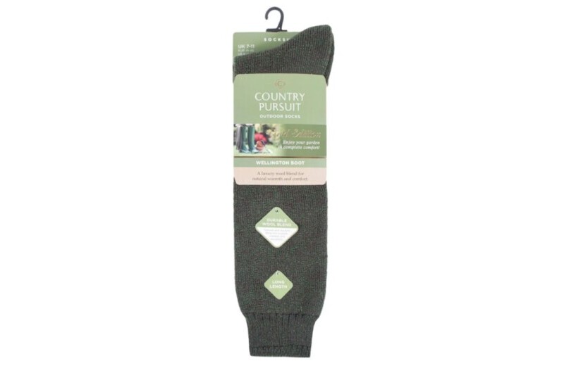 Country Pursuits Wellington Boot Socks - Green, SOCKSHOP Country Pursuit Wellington Boot Socks in Green are built for those who find peace and purpose in gardens and the great outdoors. For over 25 years, gardeners, groundskeepers, and outdoor enthusiasts have relied on our durable, wool-blend Wellington boot socks to bring comfort and warmth to the humble Wellington. The demands of outdoor workfrom damp mornings to muddy afternoonshave taught us that a great Wellington boot sock should be as resilient as the land itself. Thats why every pair of our Wellington Boot Socks is built to last, providing warmth, cushioning, and dependable durability no matter the job, conditions, or season. With an extended leg length for added warmth and protection, they pair perfectly with Wellington boots. Our deluxe, fully cushioned terry-towelling structure protects and prevents uncomfortable chafing and rubbing often associated with wearing Wellington boots. Our gentle tops hold in place without restriction or pinching, ensuring a more comfortable fit, while our moisture-wicking, wool-blend keeps your feet warm, dry, and comfortable, naturally managing moisture and odour while reducing the risk of blisters. Modern, durable yarns ensure our socks maintain their shape and strength, while reinforced heel and toe areas provide extra durability and protection for long-lasting performance. Whether youre planting new blooms, walking through muddy fields, or mucking out stables, SOCKSHOP Country Pursuit Wellington Boot Socks offer lasting support, warmth, and comfort, season after season.