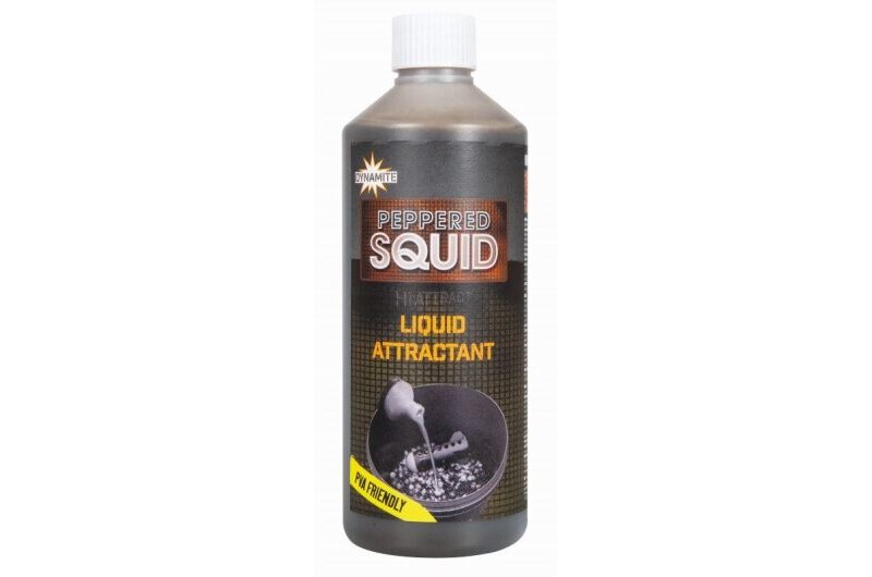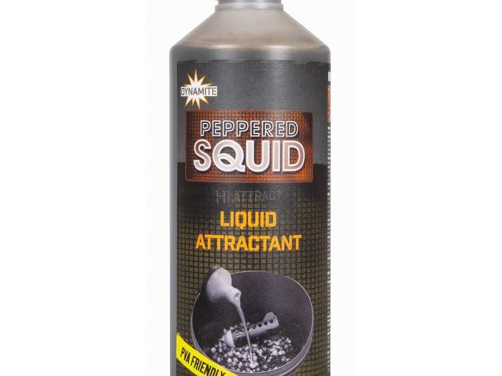 Dynamite Baits Peppered Squid Liquid Attractant, PVA friendly and ideal for using in conjunction with the matching boilies and hookbaits from the same range. Great for glugging and boosting boilies with a combination of Squid & Octopus, Black Pepper essential oil, liver hydrolysate & blended fish oils. A matching concentrated hookbait dip is also available.