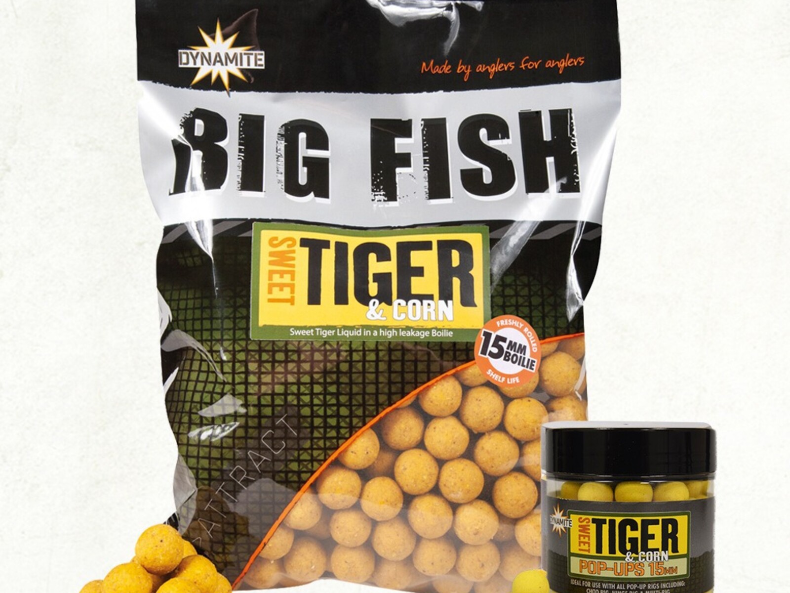 NEW for 2021, a fantastic addition to our Big Fish range of boilies. Based on our super popular Sweet Tiger Liquid with the added attraction of corn. A firm textured but high-leakage bait suitable for feeding at distance. Available in 1kg, 1.8kg and 5kg bags in 15 and 20mm (20mm size is export only).