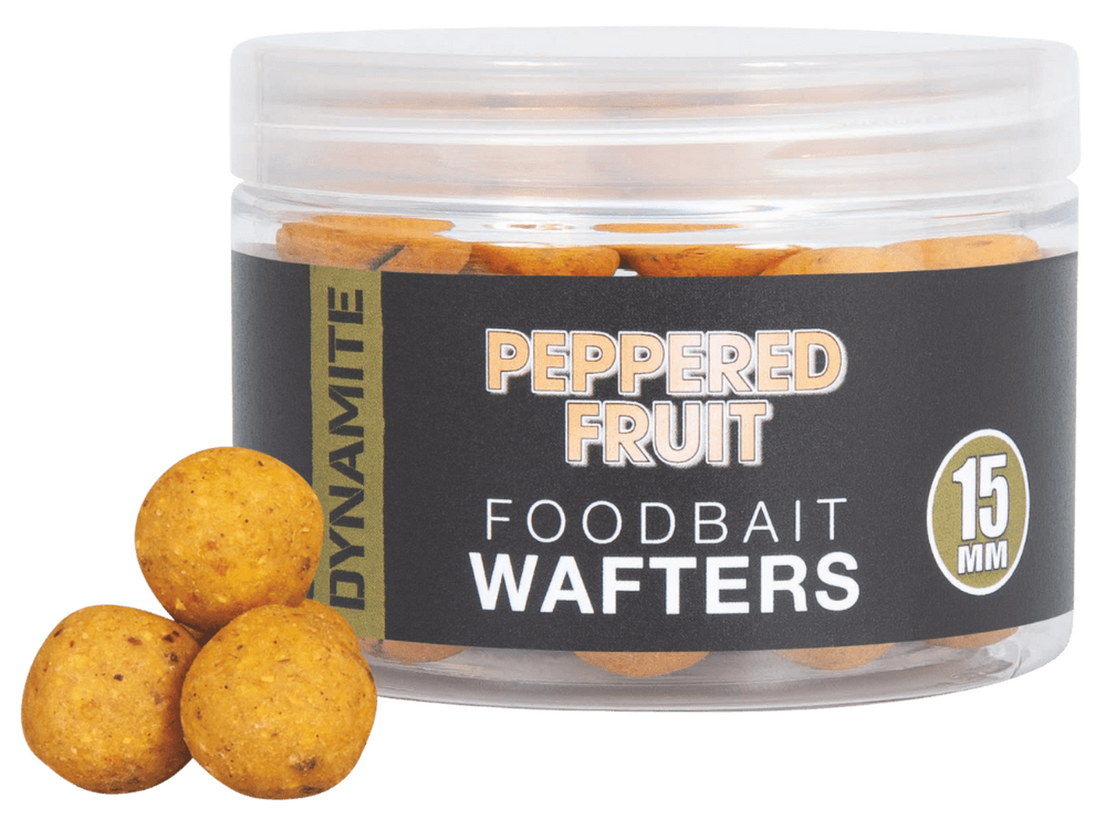 Matching colour and flavour wafters for the Peppered Fruit boilie range. Designed to balance out popular hook sizes for a subtle presentation. Perfectly suited to fishing over a bed of the matching boilies.
