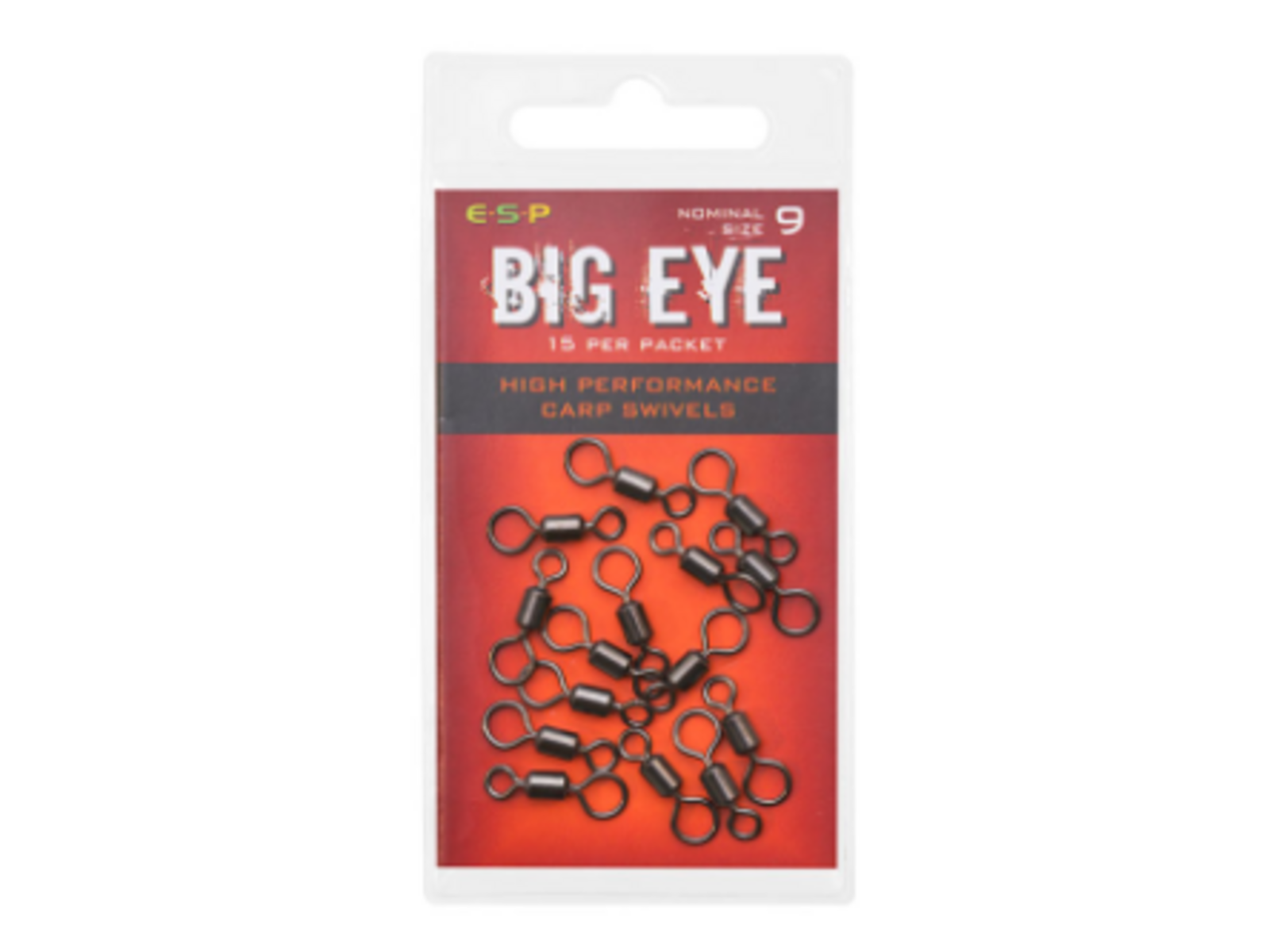 Big Eye Swivels are a standard size 9 with an enlarged ring eye at one end. The extra diameter of this Big Eye provides extra clearance, smooth performance and less resistance. Big-Eye Swivels are also excellent on running lead arrangements and marker float set ups. Features: 15 per packet Super Strong Ideal for helicopter rigs Standard size 9 with an enlarged ring eye
