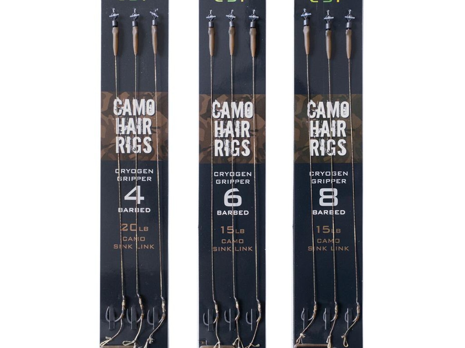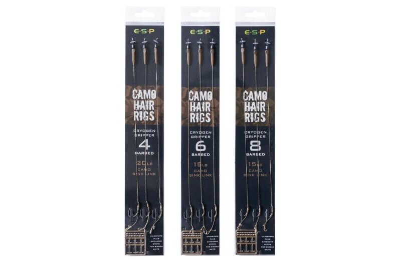Expertly tied to exacting standards using ESP Camo Sink Link braid and ultra-sharp and durable Cryogen Gripper hooks. The integrated Streamliner Rig Sleeve over the size 9 swivel helps prevents tangles on the cast. Optimum hair length in relation to the hook size, Hair Stops and Extender Stops are included. The Extender Stops are very handy if a larger bait is required or for snowman type baits.