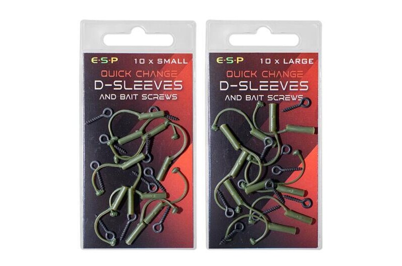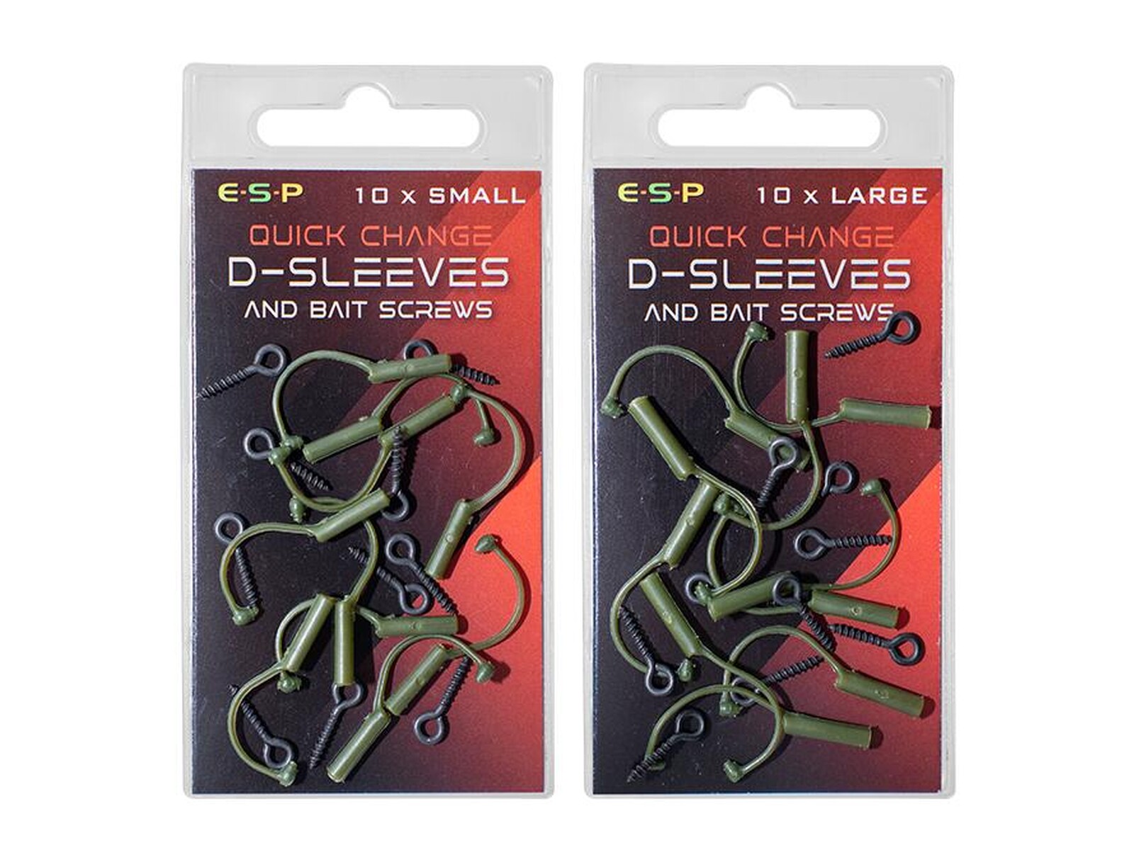D-Sleeves create greater separation between the hook and pop-up for improved rig mechanics and better hook holds. The bait screw makes hookbait attachment easy and secure. The sleeve is a snug fit over the hook eye and swivel crook and makes changing the hook quick and easy. Available in two sizes to suit different hooks. 10 sleeves & 10 bait screws per pack.