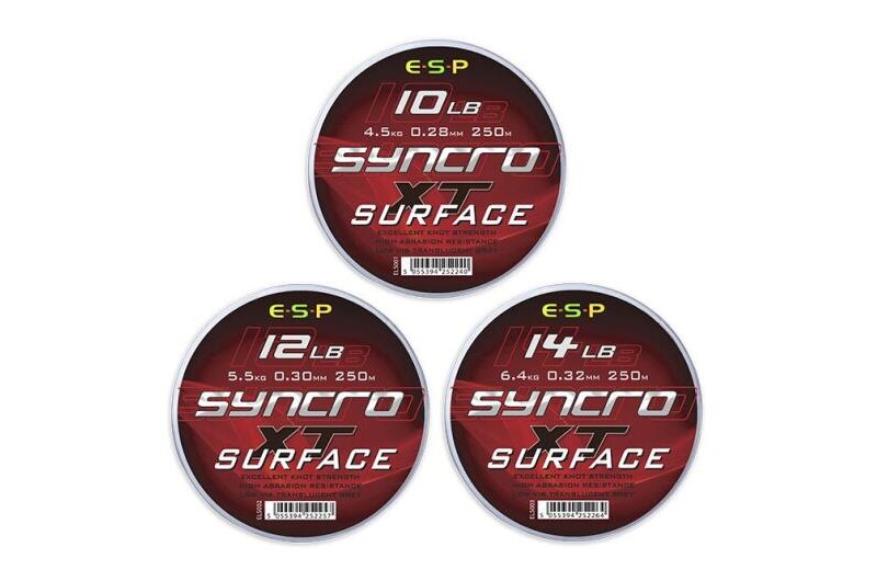 Available on 250m spools in 10lb (0.28mm), 12lb (0.30mm), 14lb (0.32mm). Inherently buoyant for easy line pick up with excellent knot strength. Syncro Surface is supple yet highly abrasion resistant. It has optimum stretch with superb casting performance and the subtle grey tint is particularly inobtrusive.
