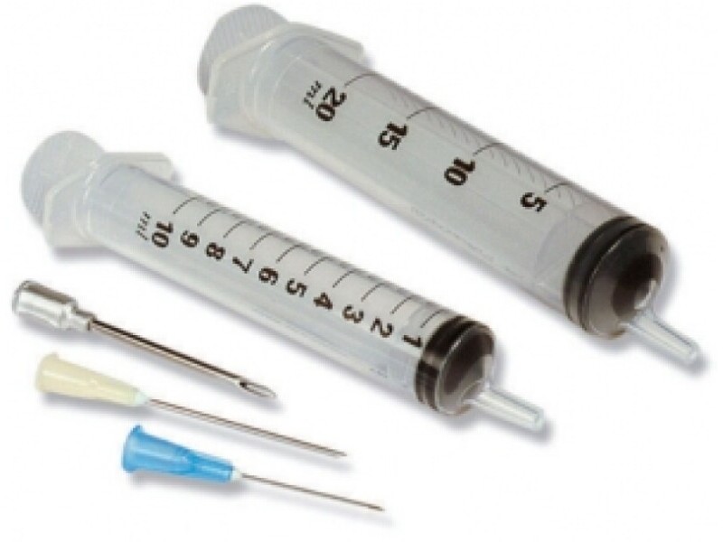 ontains three needles with small, medium and large bores, one 20ml and one 10ml syringe for injecting air or flavours/oils into deadbaits.