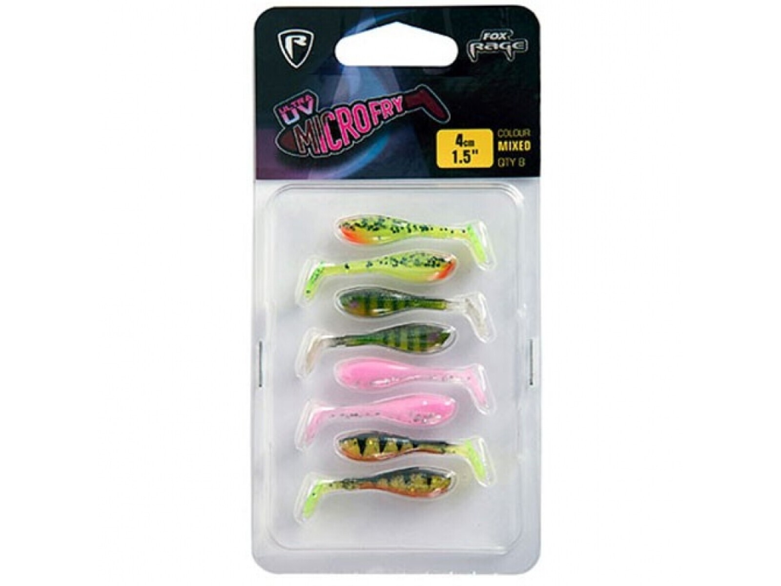 The Fox Rage UV Micro Fry Pack comes with 8 lures per pack and each one is 4cm in size.