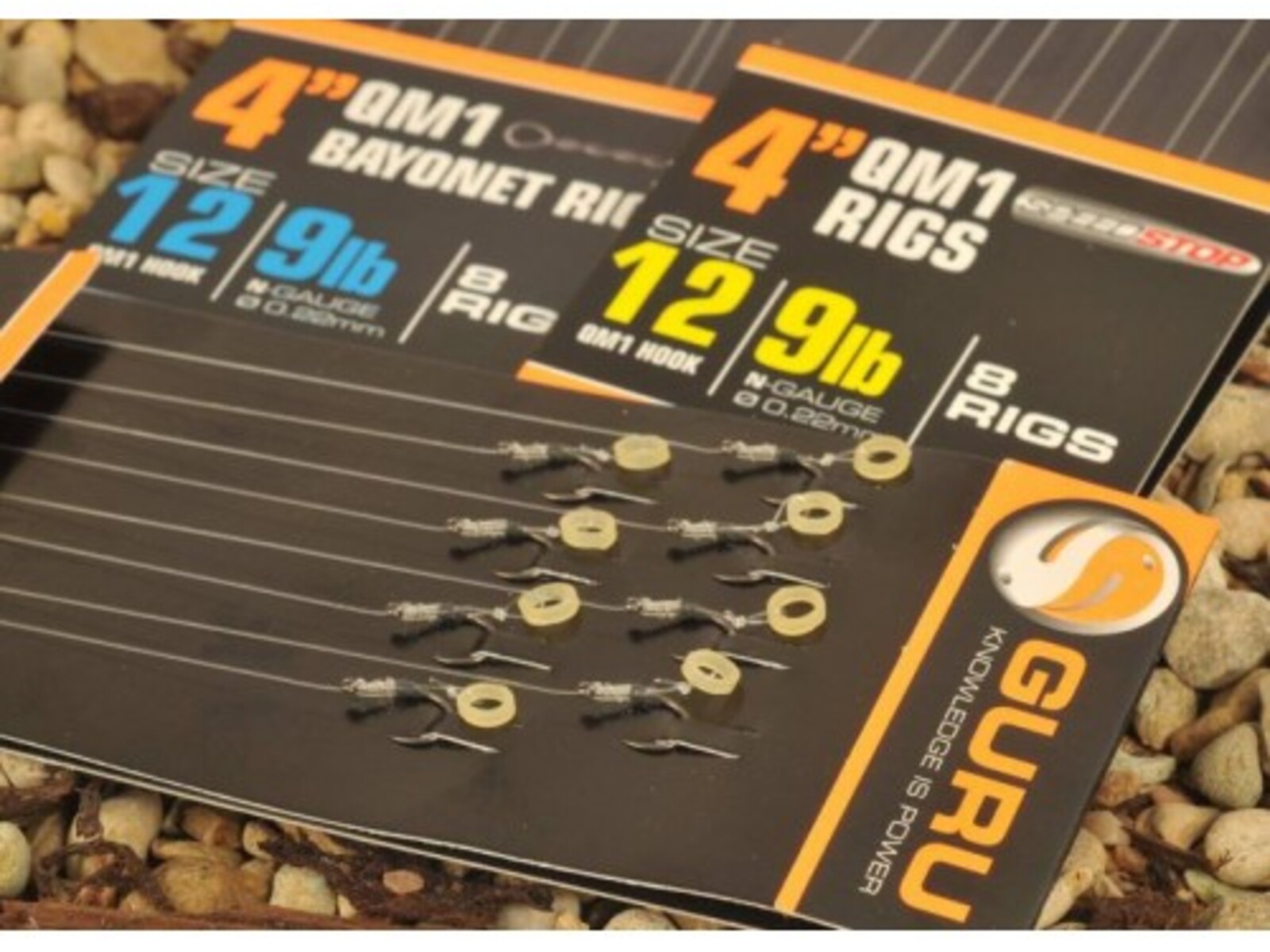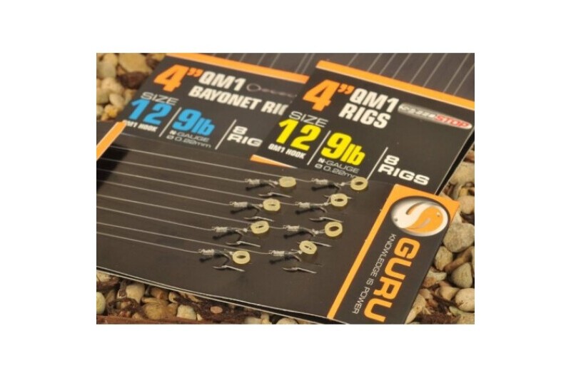 The all-conquering QM1 hooks are now available on ready-tied rigs, in 15 and 4-inch versions and with Speedstop, bayonet and bait band attachment options. The 15-inch versions are supplied on EVA spools, so they can be dropped straight into the Guru Rig Box and the 4-inch versions can be housed in the Rig Case.