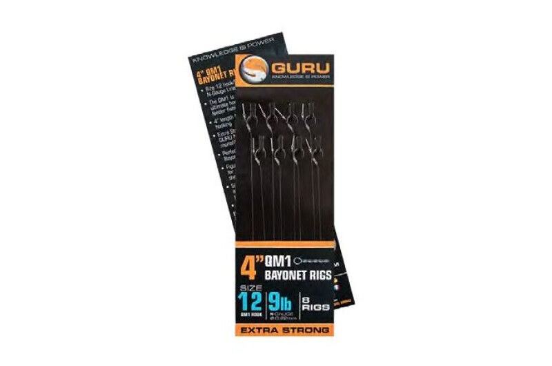The all-conquering QM1 hooks are now available as 4" ready-tied rigs, which we've designed for use with the method feeder. The length makes them perfect for use with Guru Hybrid, Pellet or Method feeders and the QM1 pattern produces incredible hook holds, which means more fish on the bank. The rigs are supplied with eight rigs per pack.
