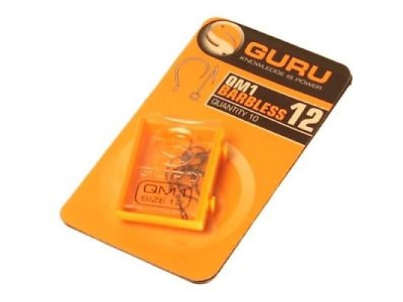 Each QM1 is PTFE coated to prolong its slick, sharpness. - So, why the unique shape? Guru product-development manager Alex Bones teamed up with mercurial commercial matchman Steve Ringer to design the perfect hook for hair rigging baits on bolt presentations. Their designs may look different to patterns that you’re familiar with, but the proof is in the hooking and you WILL lose fewer fish using the QM1s. The specimen market has quickly cottoned on to the effectiveness of the QM1 and some of the very best (and we mean VERY best) specimen hunters use the larger sizes while hair rigging for barbel and chub on rivers or tench and bream on stillwaters.