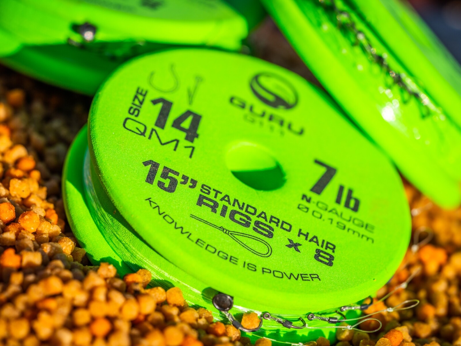The all conquering QM1 hooks are now available on ready tied 4 inch or 15 inch hair rigs with a fitted bait band. The 4 inch versions can be housed in the Guru Rig Case, while the 15 inch versions are supplied on bespoke EVA spools.