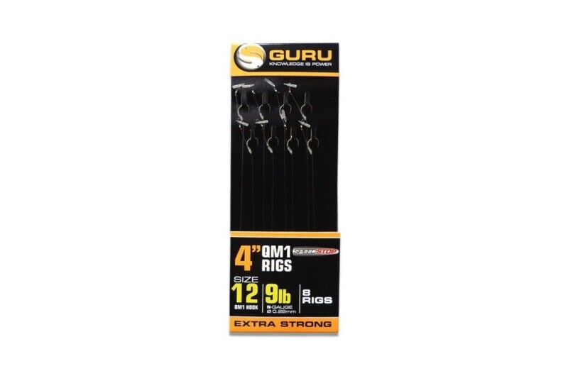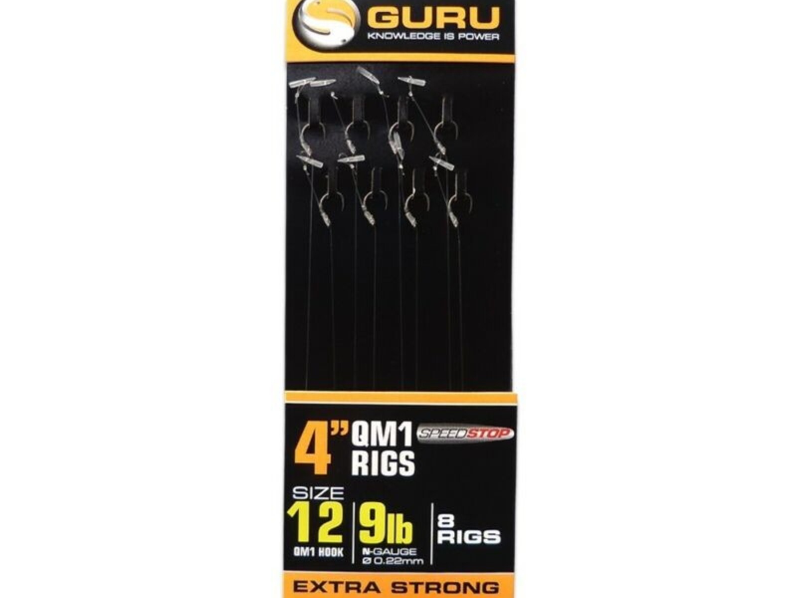 The all-conquering QM1 hooks are now available on ready-tied rigs, in 15 and 4-inch versions and with Speedstop, bayonet and bait band attachment options. The 15-inch versions are supplied on EVA spools, so they can be dropped straight into the Guru Rig Box and the 4-inch versions can be housed in the Rig Case.