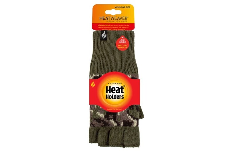 Heat Holders Fingerless Gloves - Skala - Camo, When temperatures start to fall, your hands and fingers feel it first. Apart from being unpleasant, cold hands can worsen painful conditions like chilblains, sensitive joints and Raynauds syndrome. To keep enjoying your life outdoors all winter long, you need thermal protection that wont let you down. Unlike regular fashion gloves, Heat Holders gloves offer both sophisticated style and warmth you can rely on. Drawing on our longstanding expertise in thermal clothing, weve created a range of thermal gloves that could be the warmest, softest and most comfortable youll ever wear. Heat Holders thermal fingerless gloves combine comfort and practicality. The main part of the glove offers classic Heat Holders warmth, while the half-length fingers mean you can use your phone, find your keys or complete any other fiddly task without taking off your gloves.