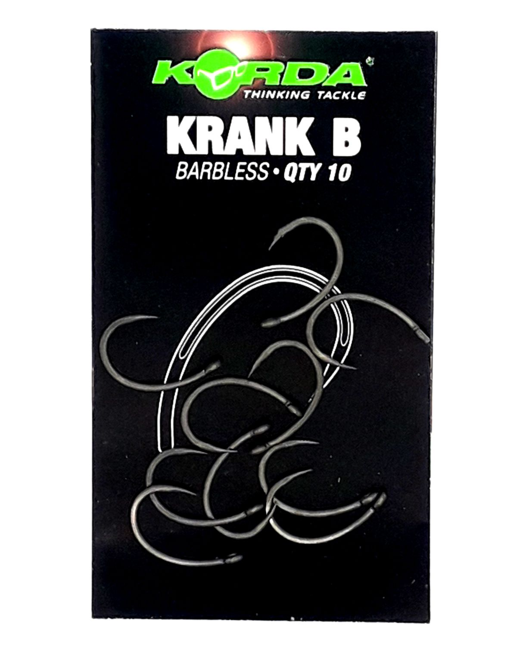Korda Krank Barbless Hooks This pattern is the brainchild of Tom Dove, who was looking to design a pattern of hook that had the aggressive sweeping shank of the Kurv Shank, with an enormous gape for maximum purchase and hooking potential. Throw in an offset point too and you have the Krank, a hook that's such a good hooker it's best used with a simple knotless knot setup!