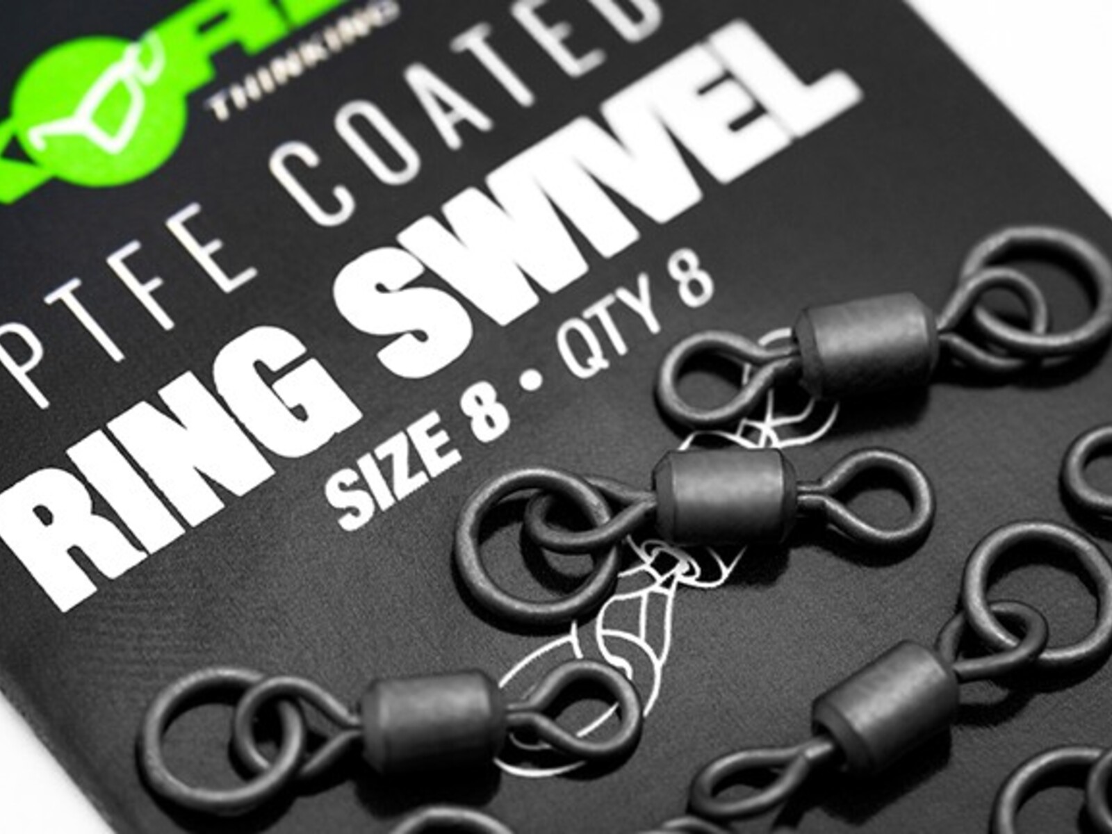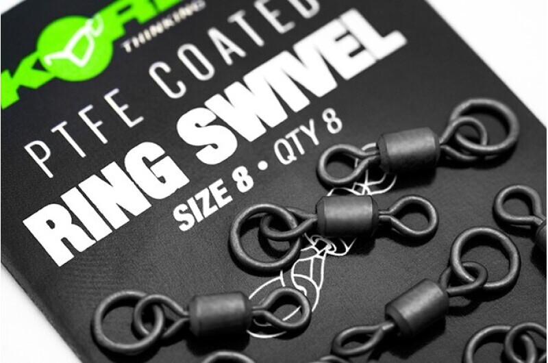 The Korda Size 8 PTFE COATED RING SWIVEL has been designed to fit inside Korda Lead Clips, Inline Leads and Bait-Up Method Feeders. The ring creates a hinge in-between the lead system and the hooklink which is designed to allow the rig to lay correctly on the bottom.