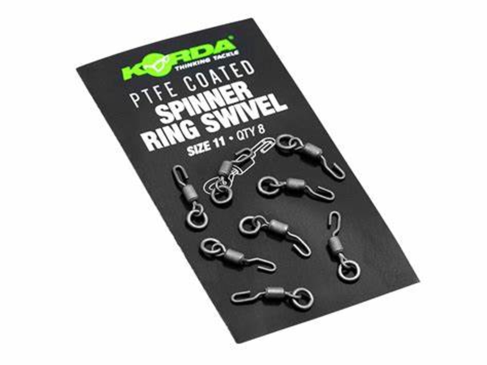 The Korda Size 11 PTFE COATED SPINNER RING SWIVEL has been purposefully designed for creating the popular Spinner/Ronnie Rig. It uses a Polytetrafluoroethylene (PTFE) coating which is a synthetic polymer and has one of the lowest coefficients of friction of any solid. This makes it the perfect coating for our swivels as it reduces friction between the barrel and swivel eye, allowing them to rotate freely, this in turn will improve the hooking efficiency of your Spinner Rig. Having the most efficient rotation will increase your rigs mechanics and help them to perform at their optimum level.