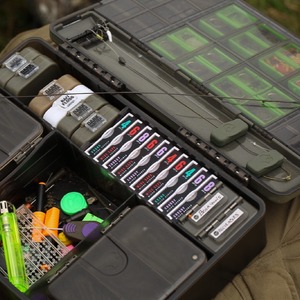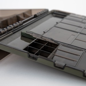 You can customise it to exactly what suits you, thanks to the range of accessories that fit into it. There are 29 compartments built into the lid of the box, with clear plastic flip tops to keep everything secure and allow you to see what is inside, and these can be used to store all sorts of smaller items such as swivels, rig rings, Heli-Safe, shrink tube, or anything of a similar size.