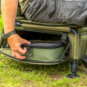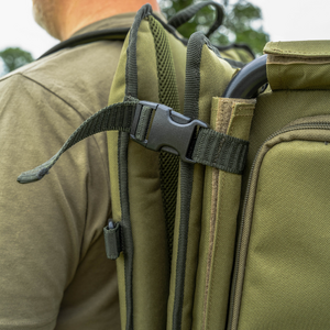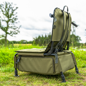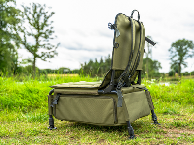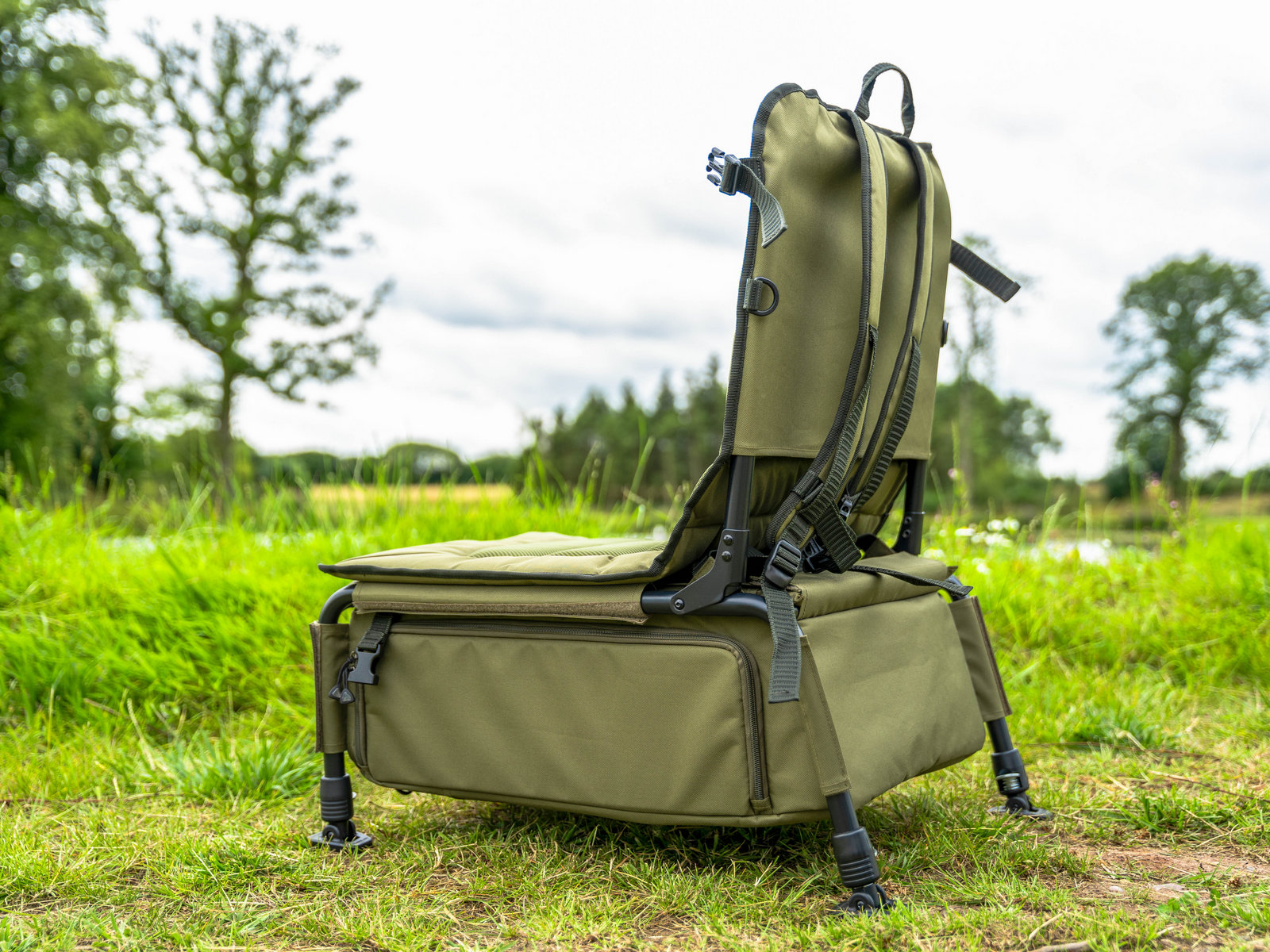 A revolution in how anglers carry their fishing gear. By combining a comfortable, lightweight chair with a compact flatbed carryall, the Ruckchair can be carried just like a rucksack. Access your fishing tackle directly below your seat, just as anglers do on seatboxes, without the weight and transport issues. Bag features entry points on three sides and a rear slot pocket for banksticks and chair accessories. Clips closed in transit. Rucksack straps feature a vertically adjustable chest strap. Features additional D loops for carrying unhooking mats and nets. Also features carry handle. 100% Polyester. Aluminium frame. Weight: 4.75kg.