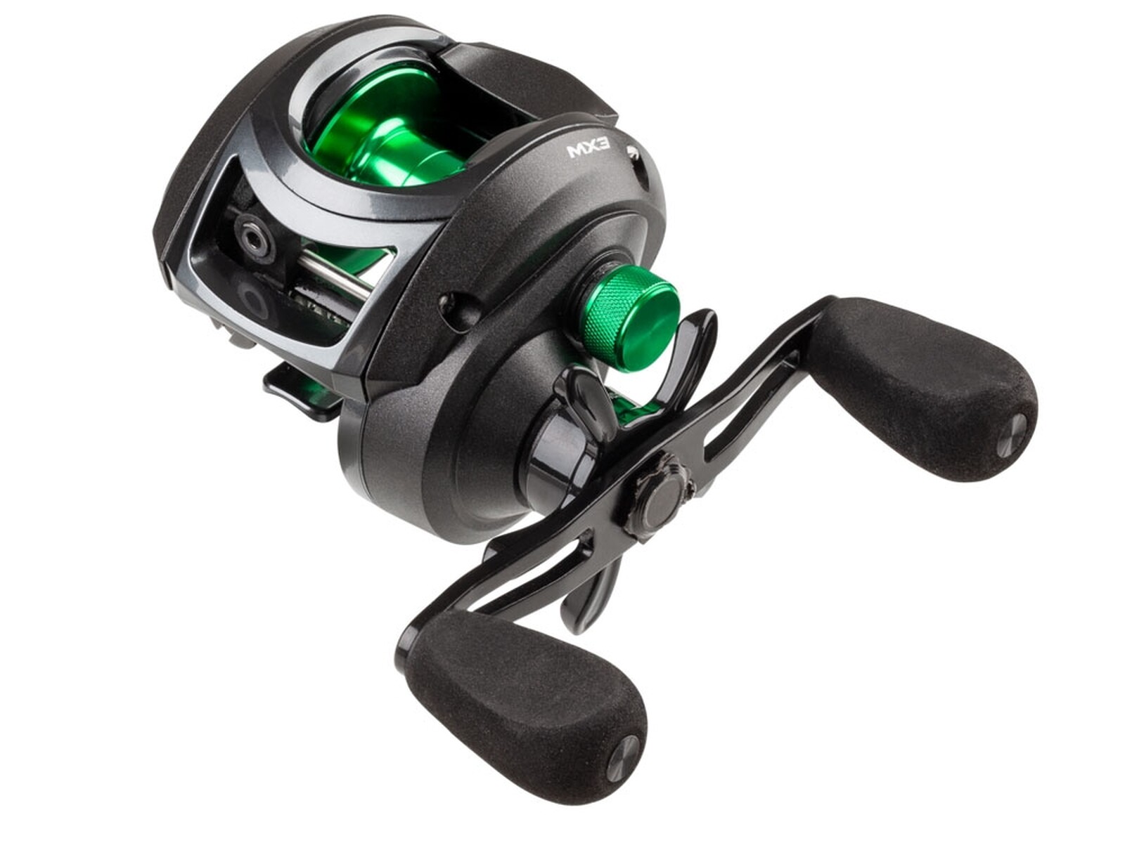 The MX3LP low profile reel is an affordable reel with strong specifications: 5 bearings, light weight one-piece graphite frame and high density EVA handle knobs. The 11-setting centrifugal braking system is very accurate and helps to determine the ideal brake settings for different lures. This system is easy accessible with the external dial button. The MX3LP is the ideal choice for the beginning baitcasting angler who is looking for decent quality for an affordable price