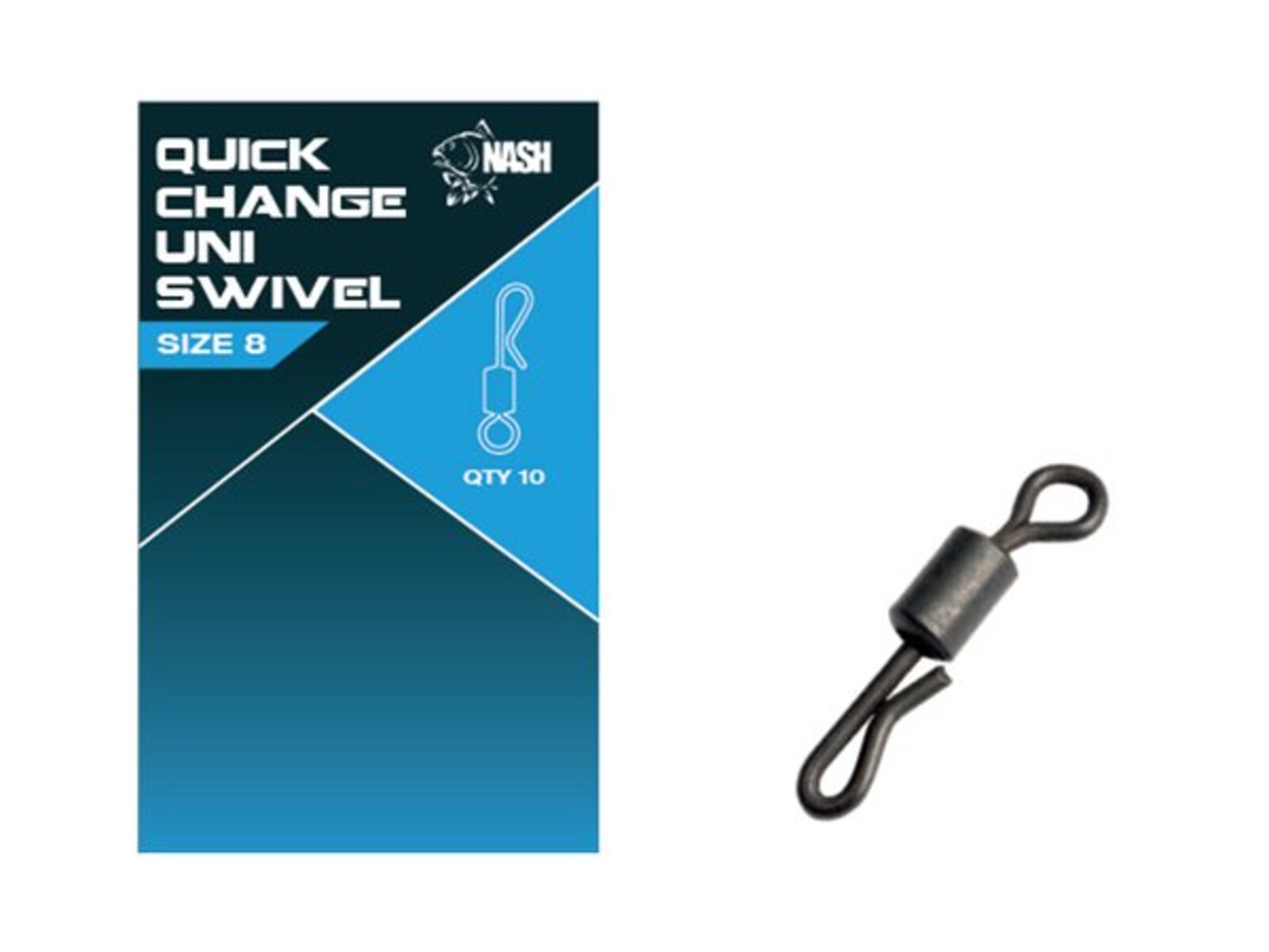 High strength swivels featuring a secure quick change connection, ideal for fast changes of looped links on any end tackle.