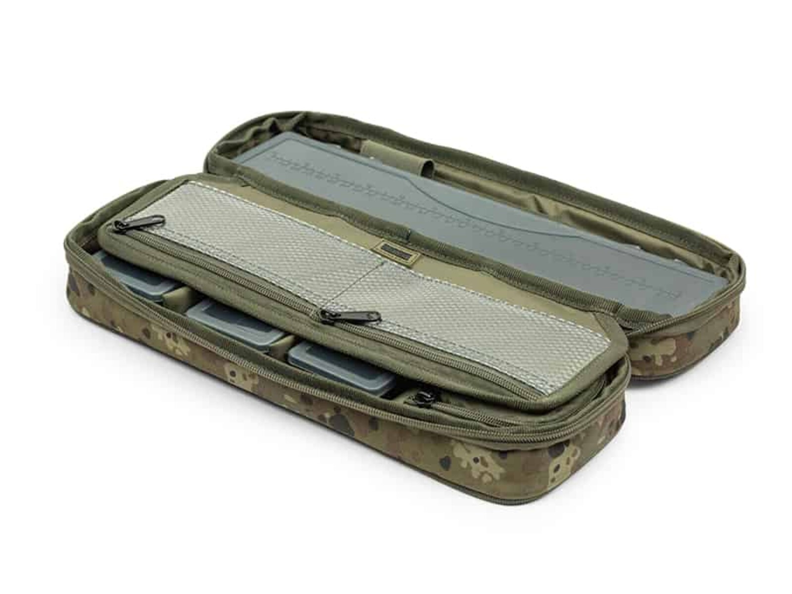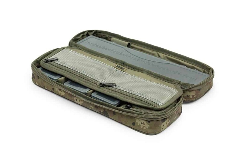 Made from our 600D Camfleck fabric, this tackle pouch features three small detachable compartmented boxes, a 12-inch rig board (also detachable), and an integral zipped padded lead compartment.