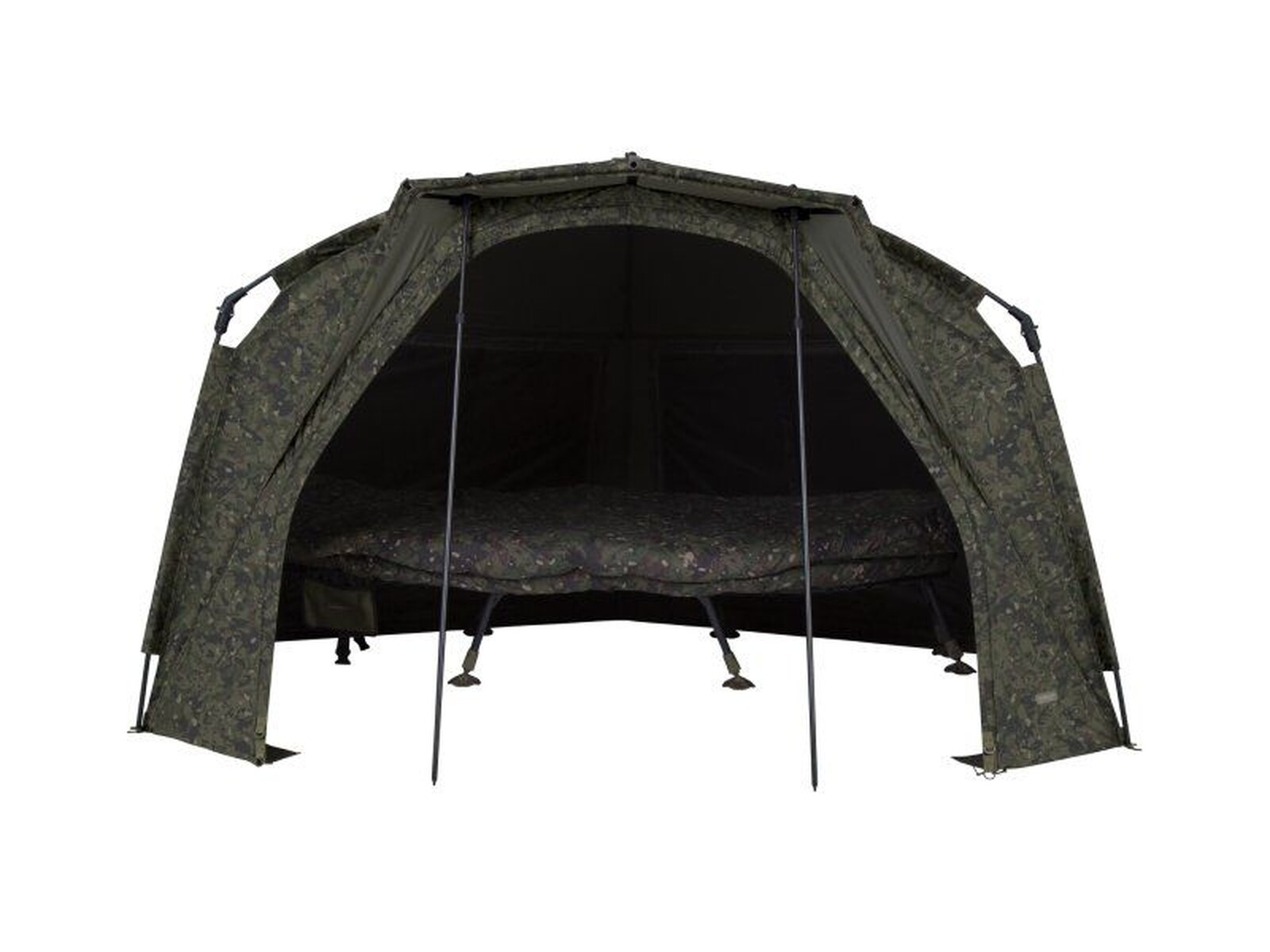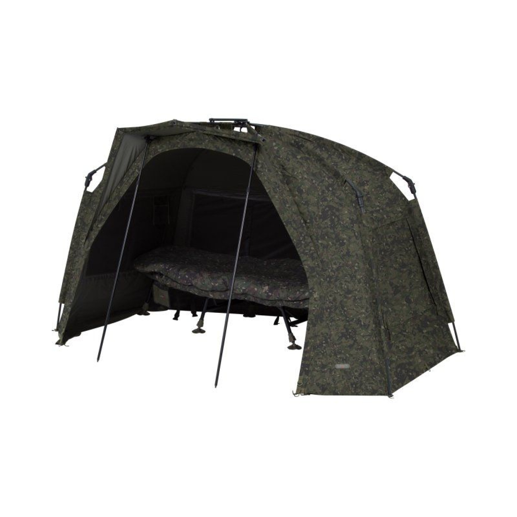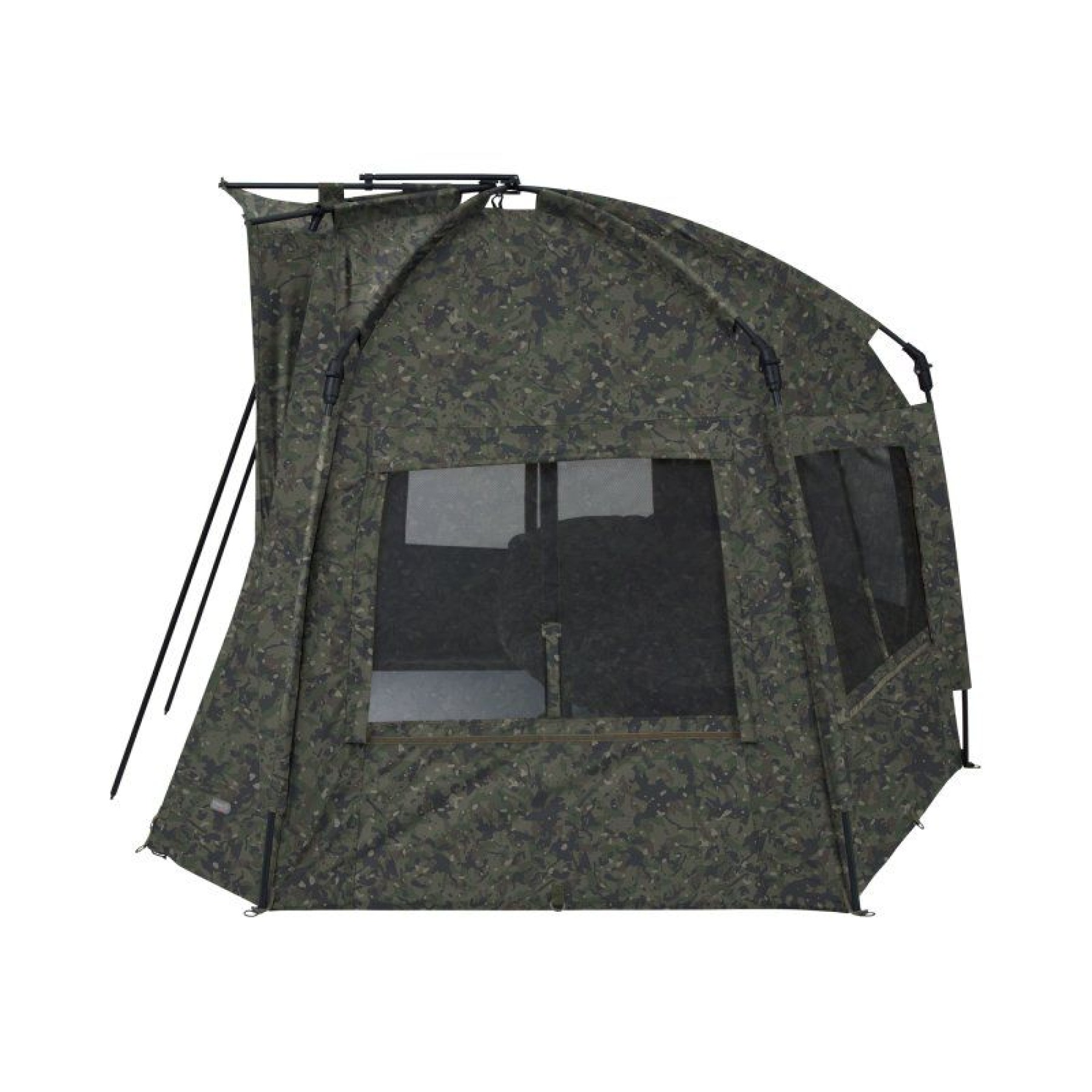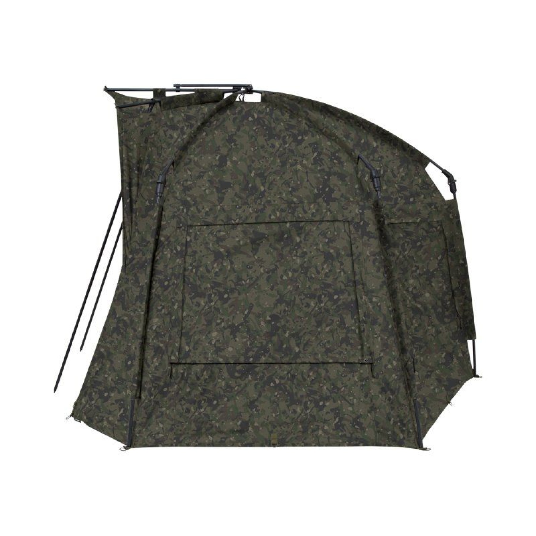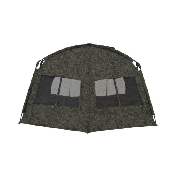 The quickest, "easy-erect" shelter just got even better with the introduction of the phenomenal Tempest RS Brolly Camo. At the core of this one-man fishing bivvy is the renowned, patented hinge block, allowing for ease and speed of set-up. The set-up time, usability and functionality have all been enhanced even further with the Rapid Knuckle System®, enabling all five main poles to lock into position in one effortless action. Simple, secure and strong, erecting your shelter has never been easier. Additional Rapid Shelter enhancements include a built-in peak to minimise water ingress in and around the door and this peak can be increased even further to allow even more coverage with the addition of a Skull Cap. The rear of the shelter has been made flatter than its predecessor, striking an optimal balance between internal storage space, the ability to fit into swims and aerodynamics. Airflow through the shelter has been improved with Adaptive Ventilation® on six vents (four on the rear and two on the front), facilitating air flow even when it is raining. To help stay cooler in the hight of summer, the four rear vents can be pegged out to create areas of shade, which, when used in partnership with a Skull Cap, can reduce the internal temperature by several degrees. For optimal storage, there are four internal pockets, two on each side and two at the front. Those at the front have a hanging loop where you can store essentials such as your receiver or even your jacket for a speedy exit in inclement weather conditions.